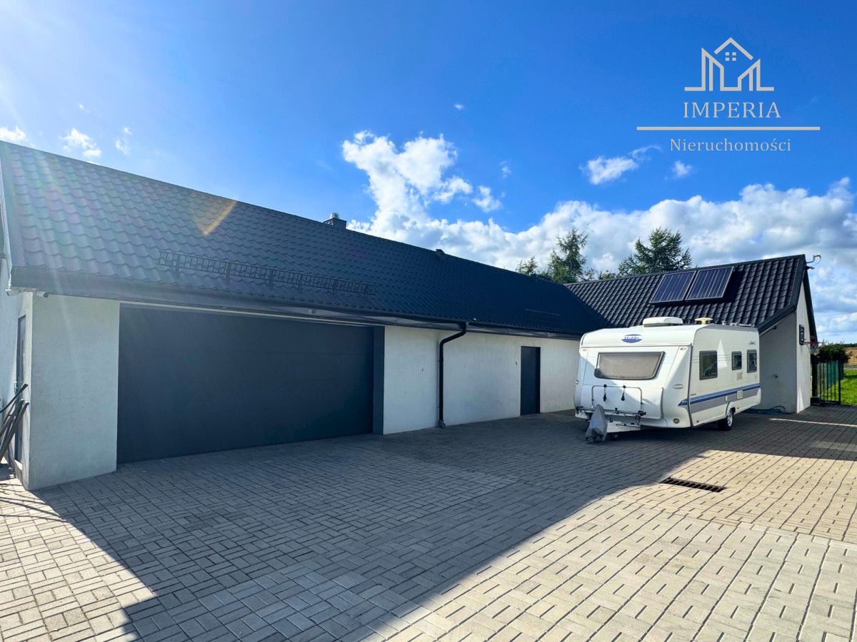 - duży, podwójny garaż + pomieszczenie gospodarcze z kotłownią i wędzarnią,