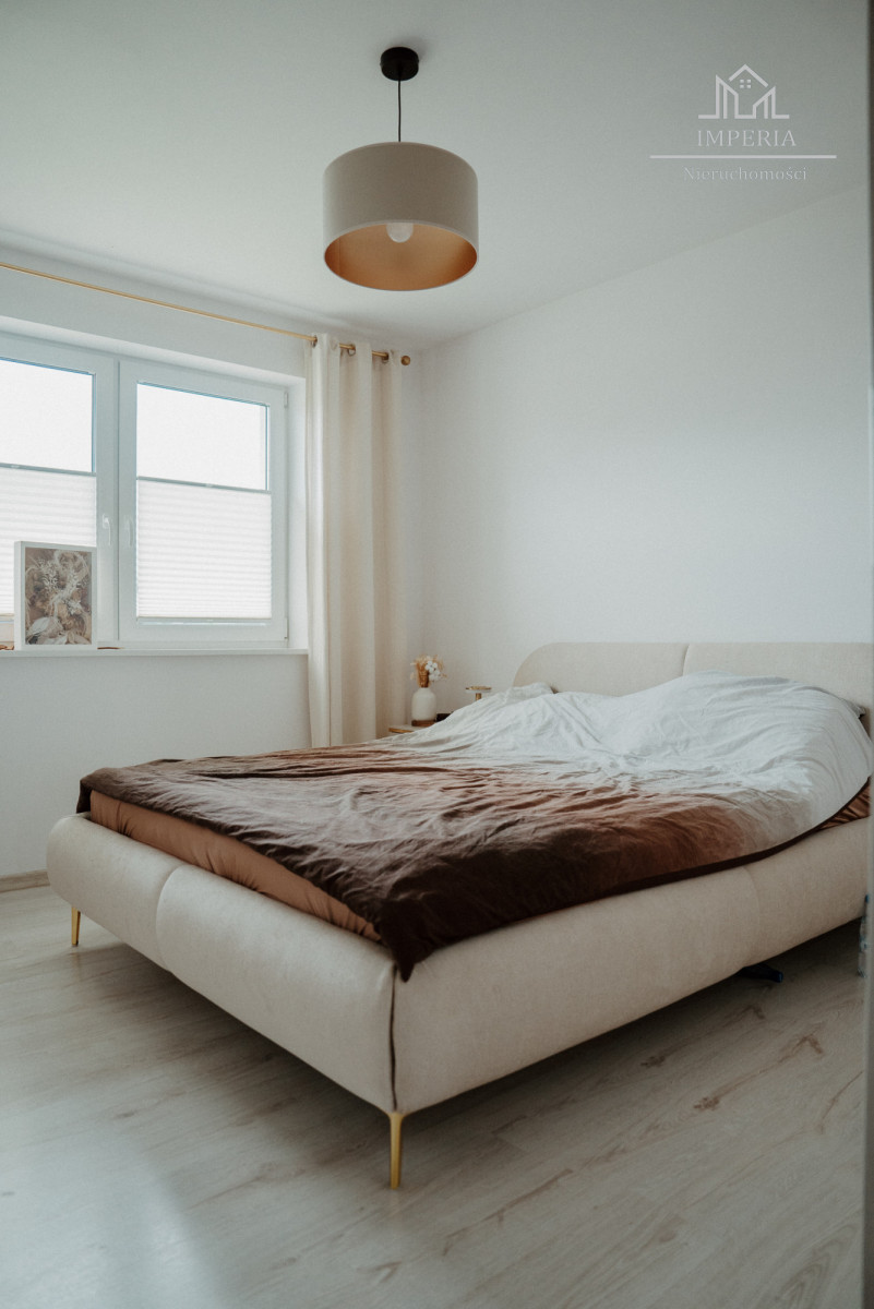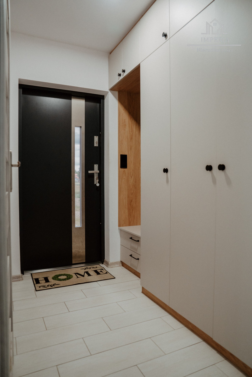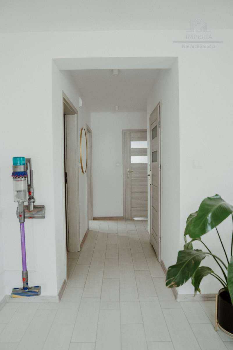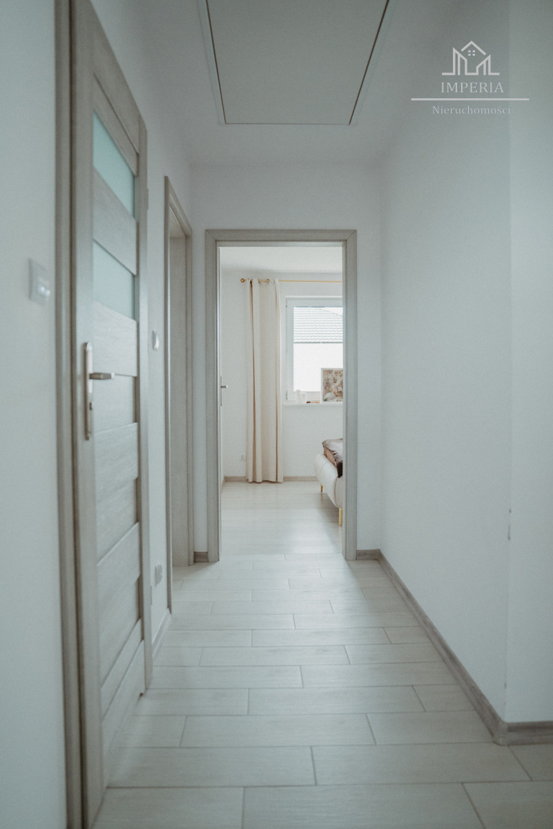 Na podłogach znajdują się wysokiej jakości panele (sypialnie) oraz nowoczesne płytki (salon, kuchnia, łazienki). W korytarzu znajduje się dostęp do poddasza - przestrzeni do własnej aranżacji. Strop został ocieplony wełną mineralną.