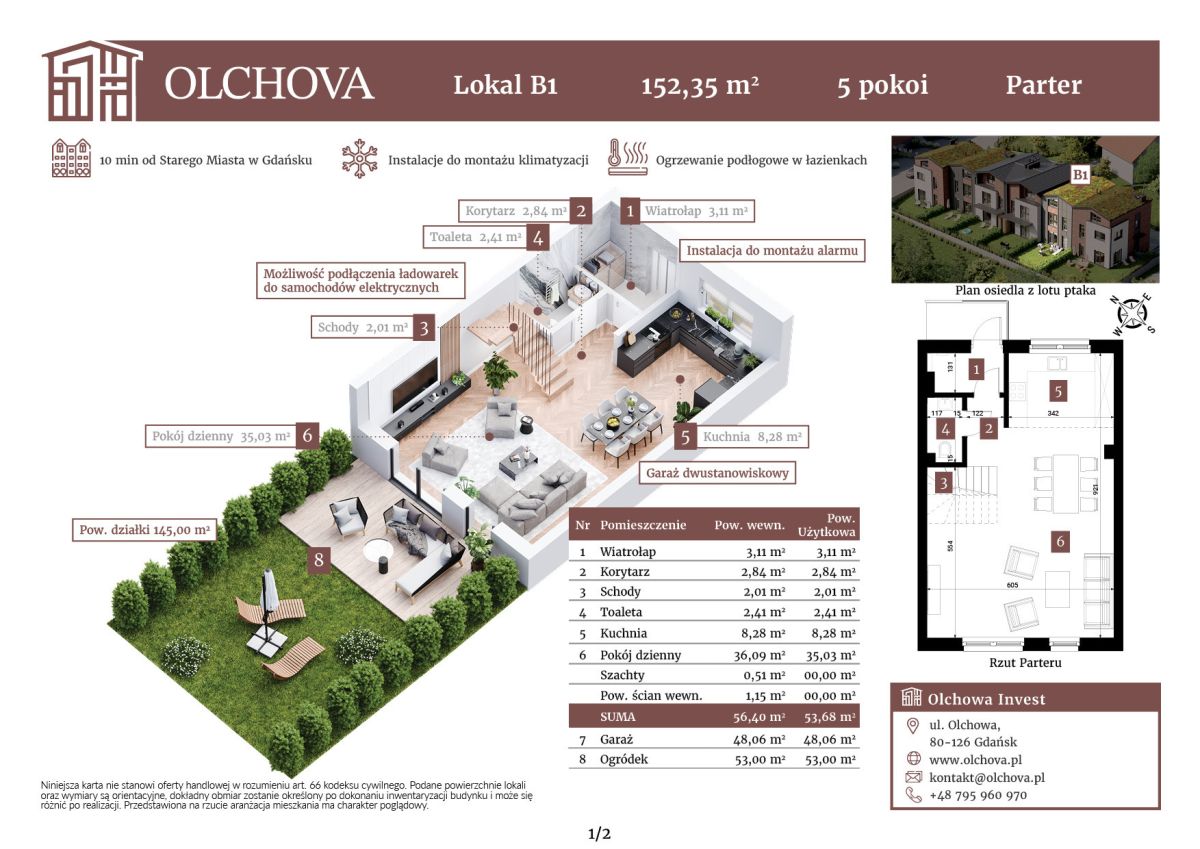 5 pokojowy dom 152,35 m2 + ogródek 53m2 ( lokal B1)