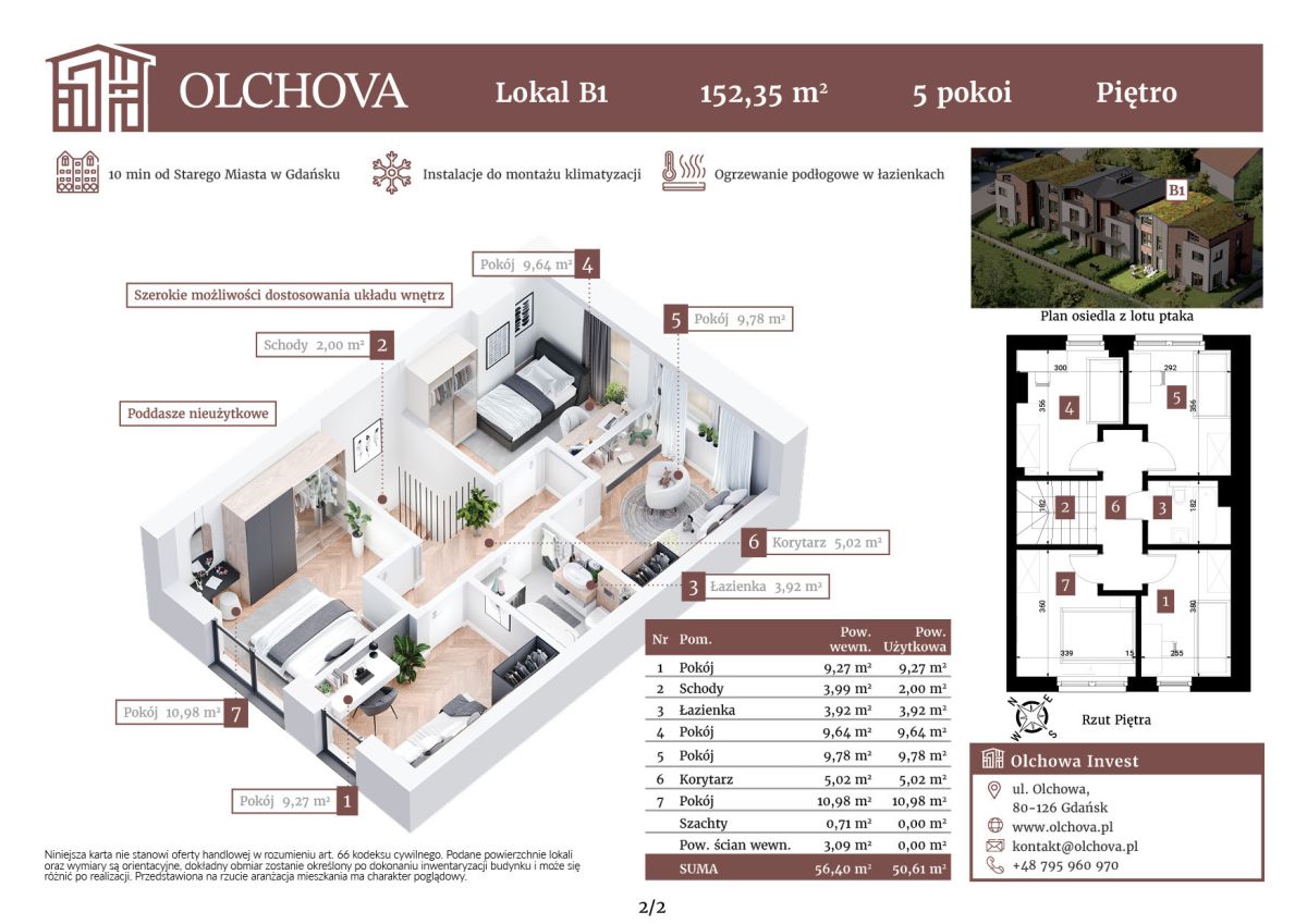 Powierzchnia piętra: 50,61 m2