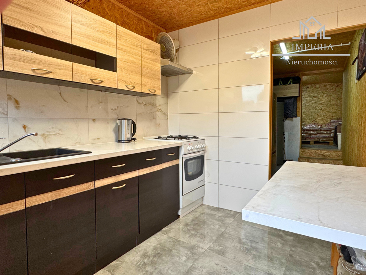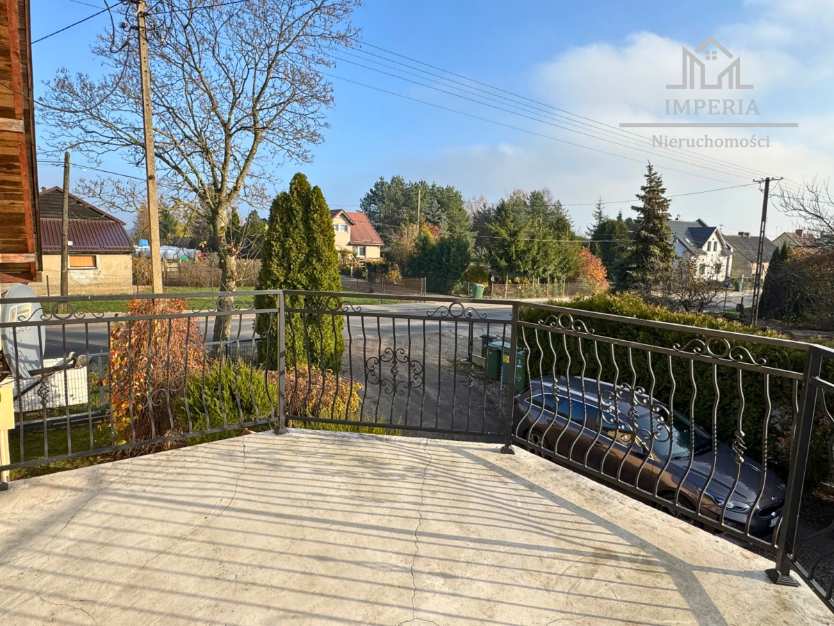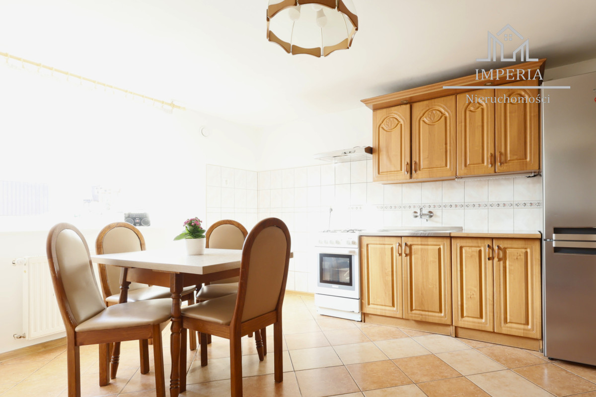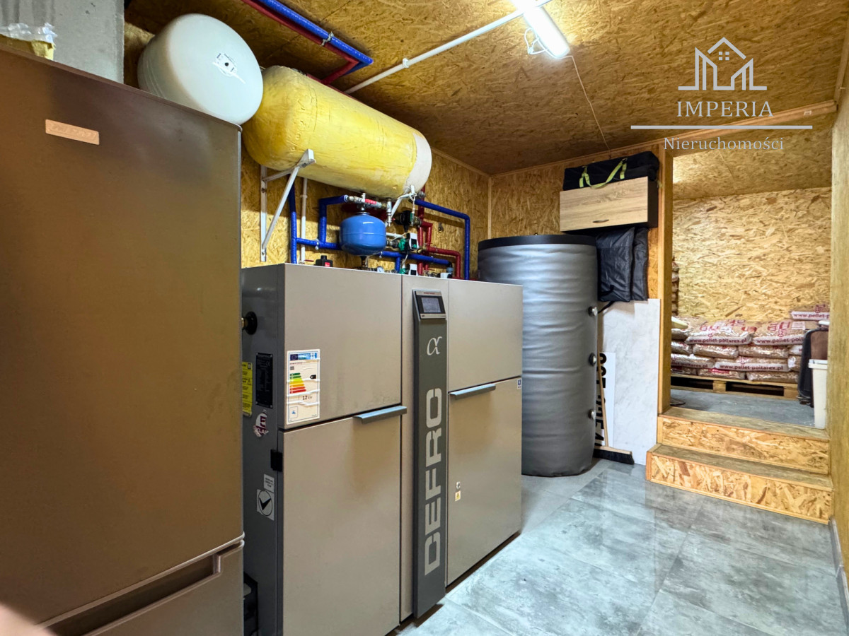 Przed domem utwardzony podjazd z kostki brukowej, a za domem zielona przestrzeń z placem zabaw dla dzieci. Na posesji znajduje się również wolnostojący garaż z nowo wyremontowaną kotłownią, w której znajduje się również dodatkowa kuchnia.
