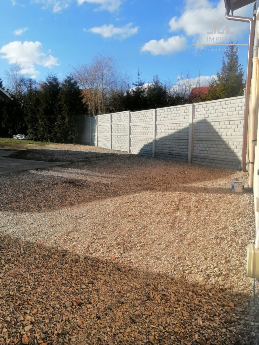 Duża działka (1862 m²) została częściowo ogrodzona płotem betonowym.